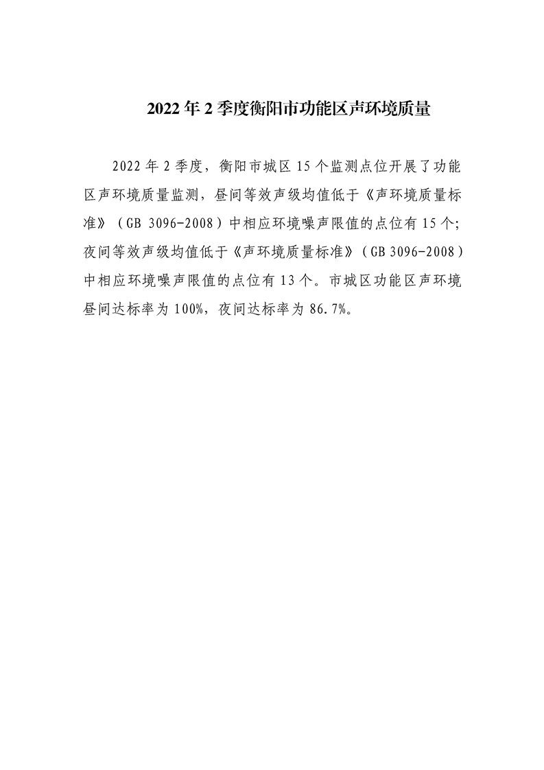 2022年2季度衡陽市功能區(qū)聲環(huán)境質(zhì)量