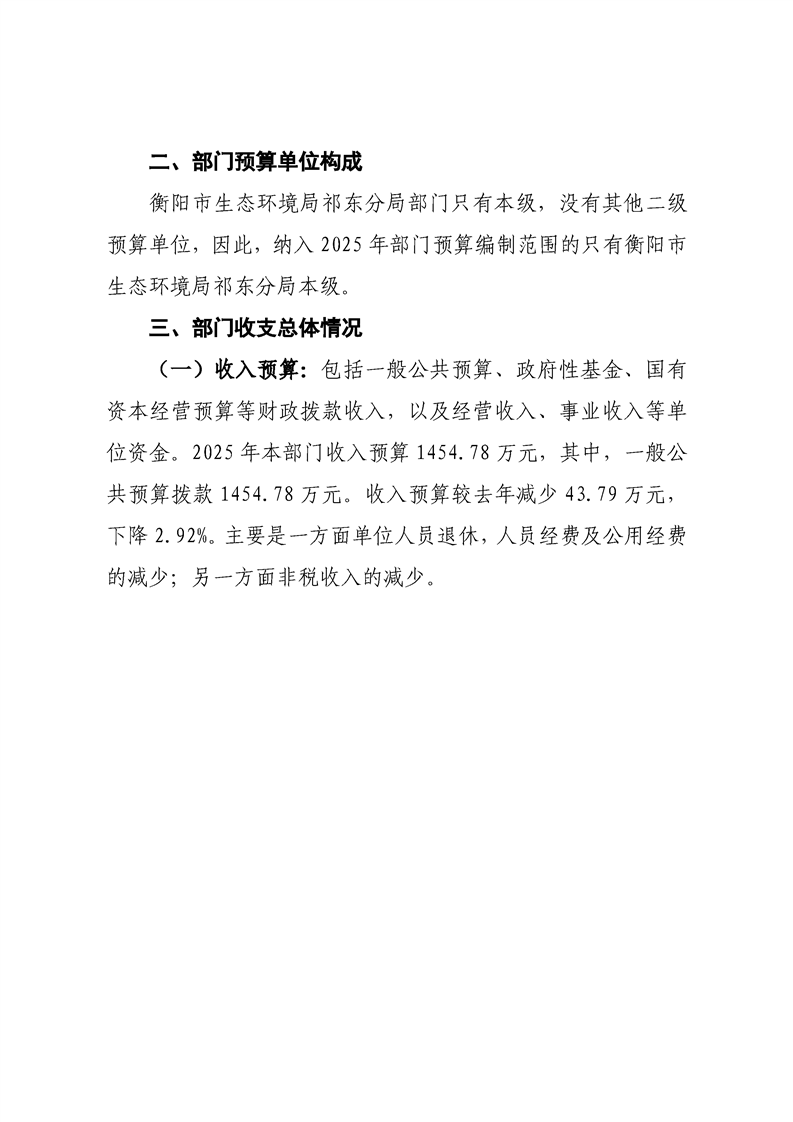 衡陽(yáng)市生態(tài)環(huán)境局祁東分局2025年部門(mén)預算