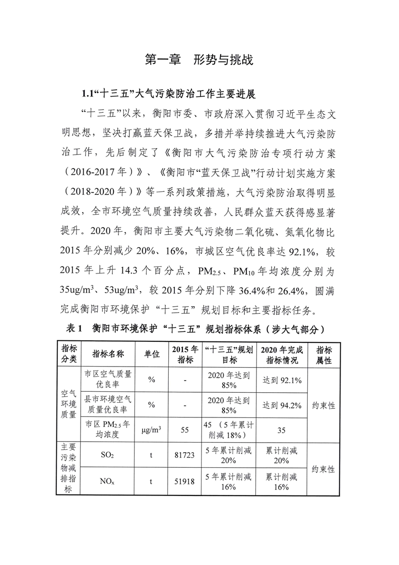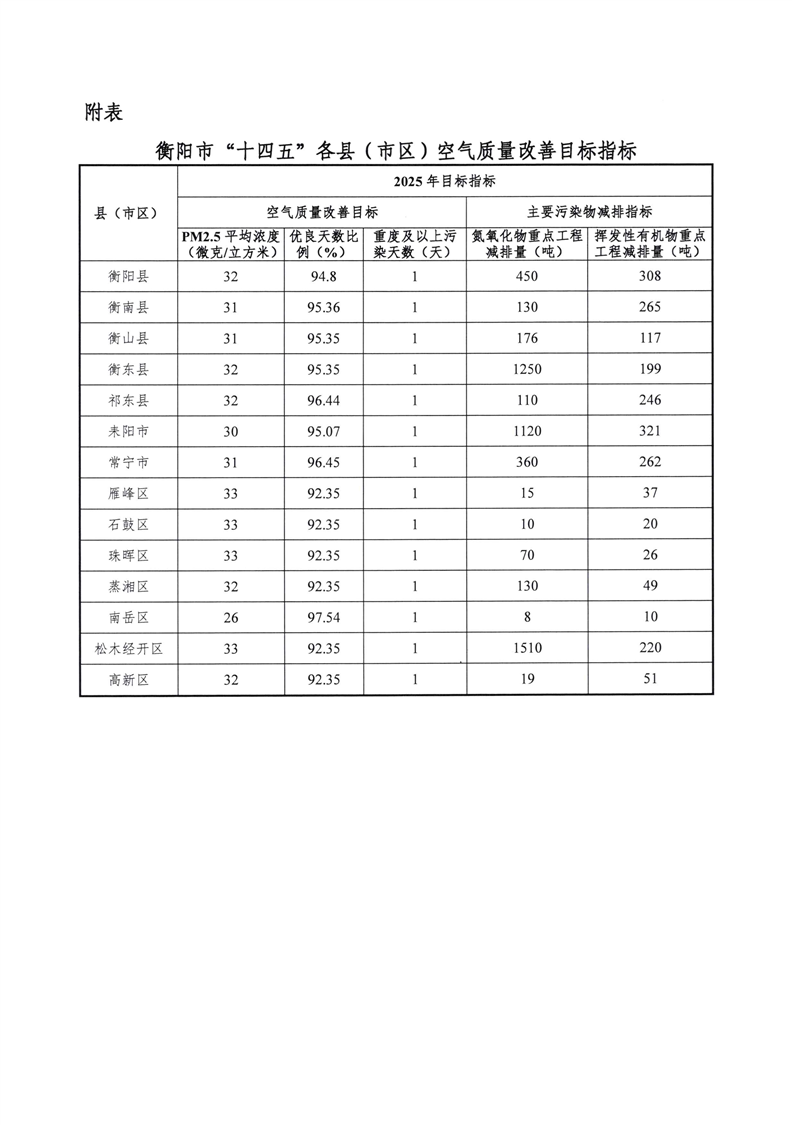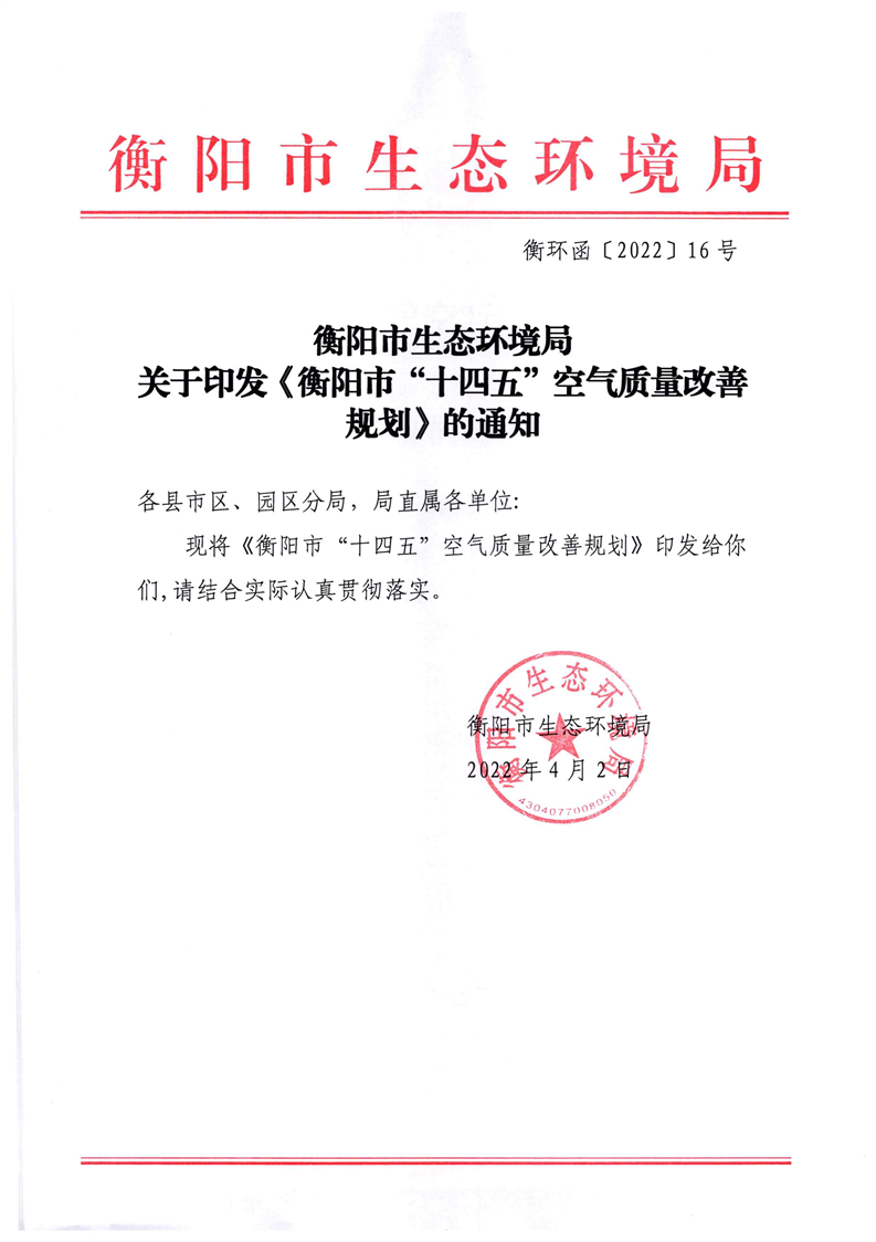 衡陽(yáng)市生態(tài)環(huán)境局關(guān)于印發(fā)《衡陽(yáng)市“十四五”空氣質(zhì)量改善規劃》的通知