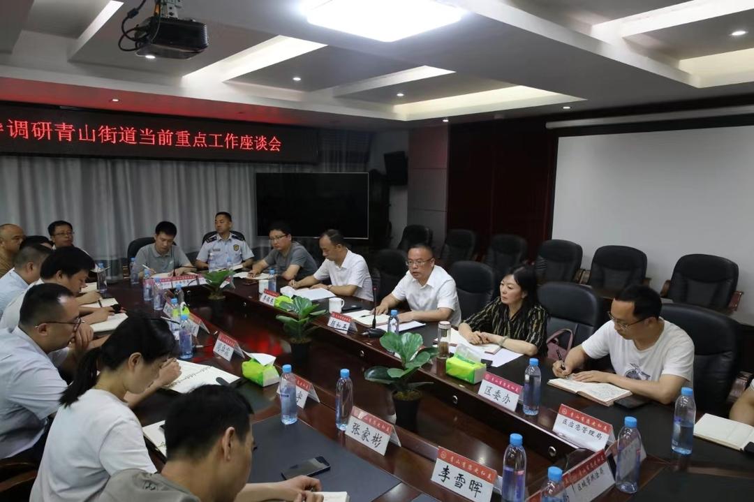 在隨后召開(kāi)的座談會(huì )上,顏和平聽(tīng)取了青山街道當前重點(diǎn)工作匯報。他指出,青山街道作為主城區,具有老街區多、老年人多和文明創(chuàng )建任務(wù)重、老舊小區改造任務(wù)重、底線(xiàn)工作任務(wù)重的"兩老三重"特點(diǎn)。面對以上工作壓力,青山街道領(lǐng)導班子精誠團結、銳意進(jìn)取,在推動(dòng)經(jīng)濟建設、嚴守安全底線(xiàn)、辦好民生實(shí)事、爭取群眾認可、創(chuàng )新品牌特色、維護大局穩定等方面作出了許多貢獻,值得充分肯定。
